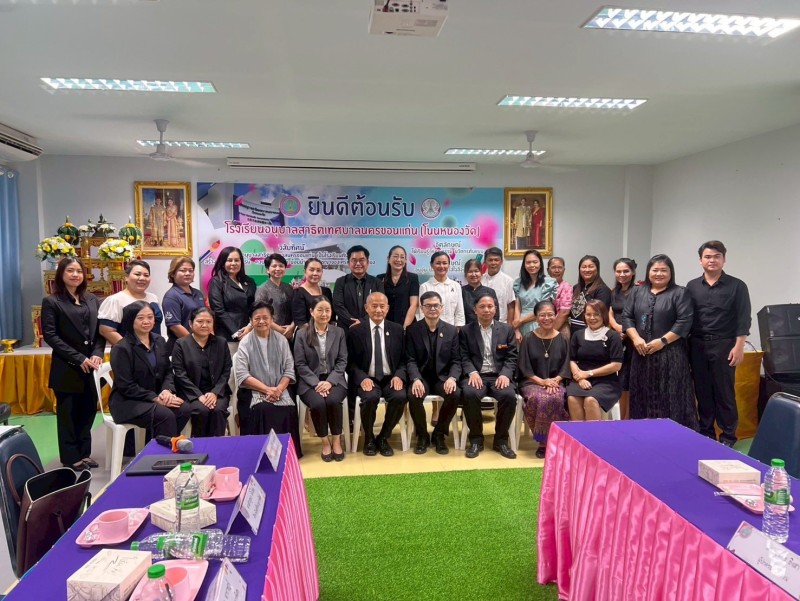 นายยุทธศักดิ์ ไชยสีหา ผู้อำนวยการเชี่ยวชาญ พร้อมด้วยนายประชารัตน์ โนนทนวงษ์ รองผู้อำนวยการเชี่ยวชาญ และคณะครูโรงเรียนอนุบาลสาธิตเทศบาลนครขอนแก่น (โนนหนองวัด) ร่วมต้อนรับคณะศึกษาดูงานจากสำนักงานเลขาธิการสภาการศึกษา