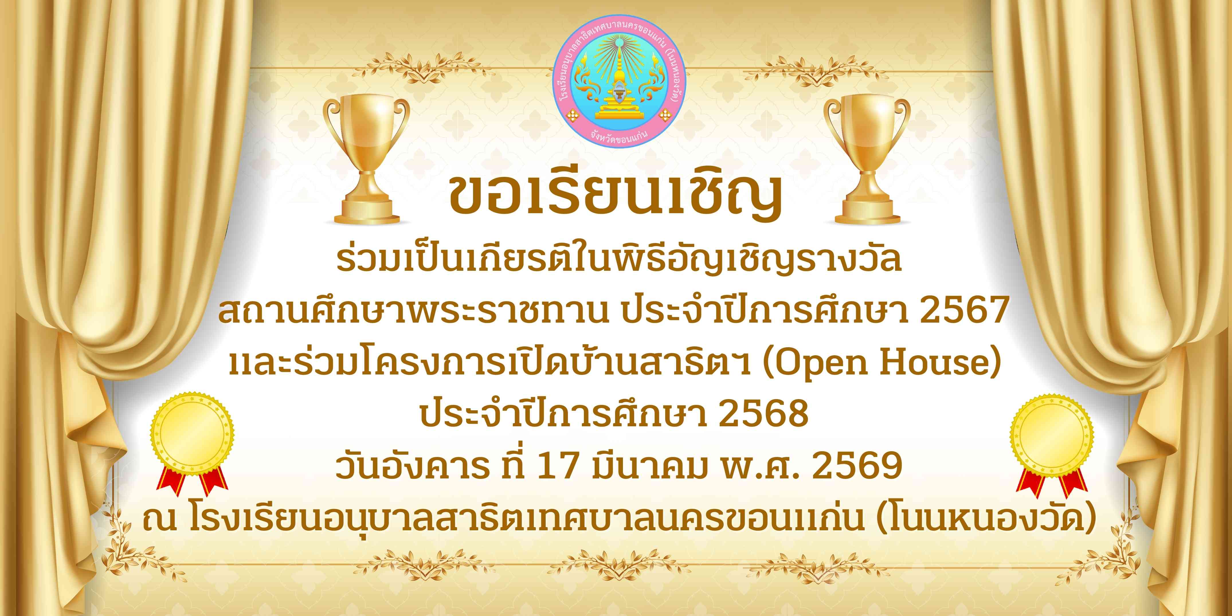 ขอเรียนเชิญแขกผู้มีเกียรติและผู้ปกครองร่วมเป็นเกียรติในงานพิธีอัญเชิญรางวัลสถานศึกษาพระราชทาน ประจำปีการศึกษา 2567 และร่วมโครงการเปิดบ้านสาธิตฯ(Open House)
